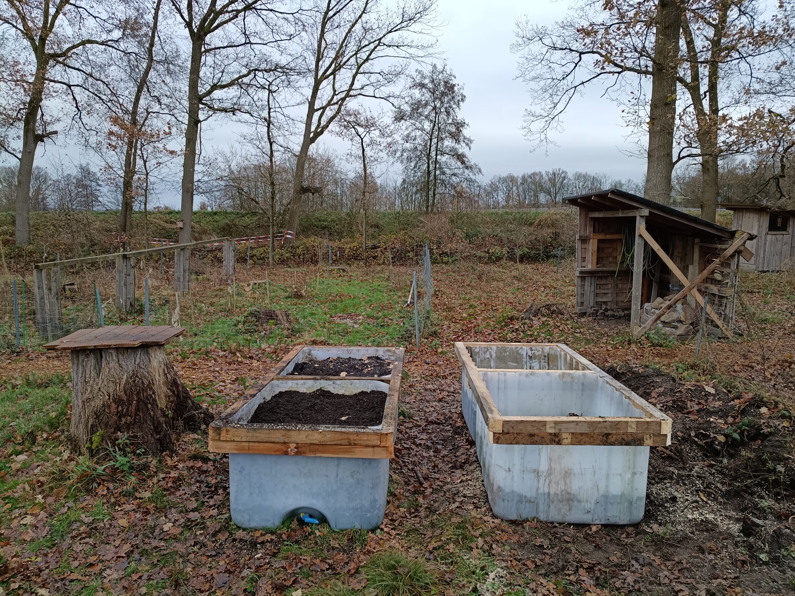 Um unseren Gemüseanbau nächstes Jahr auszuweiten, haben wir zusätzliche Hochbeete aufgestellt